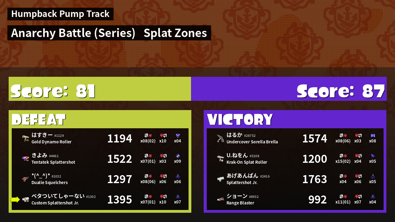 | Mode | Splat Zones - Anarchy Battle (Series) | ||