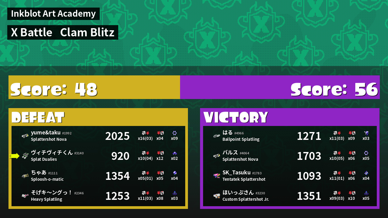 | Medals | #1 Splat Assister First Splat! #1 Crab Tank User | ||