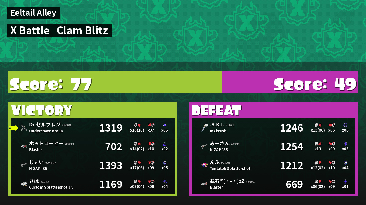 | Medals | #1 Popular Target #1 Super Jump Spot #1 Splat Assister | ||
