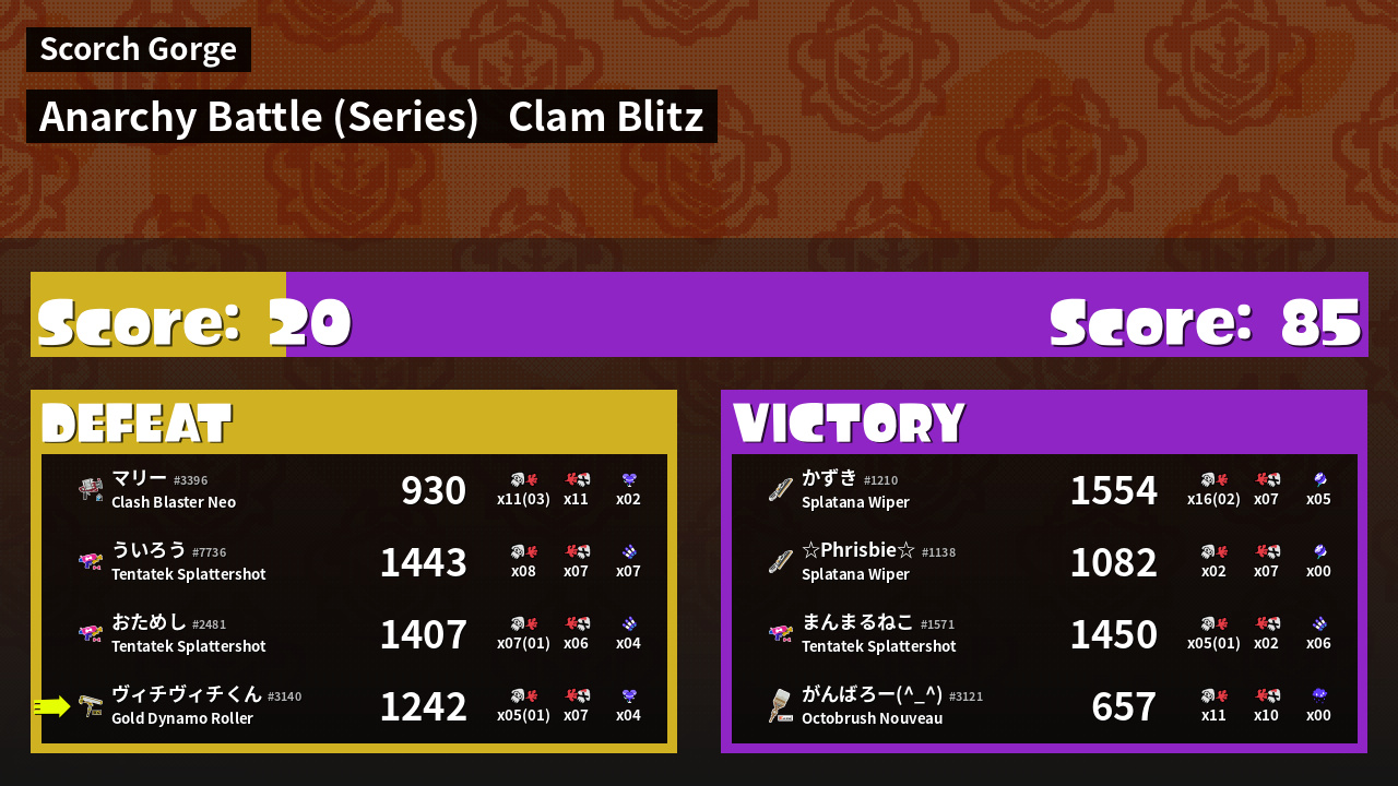 | Mode | Clam Blitz - Anarchy Battle (Series) | ||