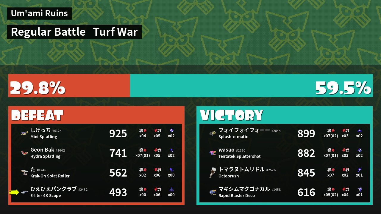 | Mode | Turf War - Regular Battle | ||