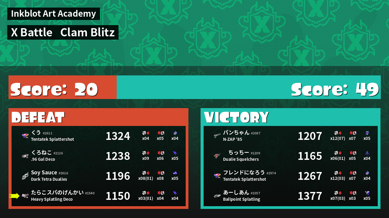 | Mode | Clam Blitz - X Battle | ||
