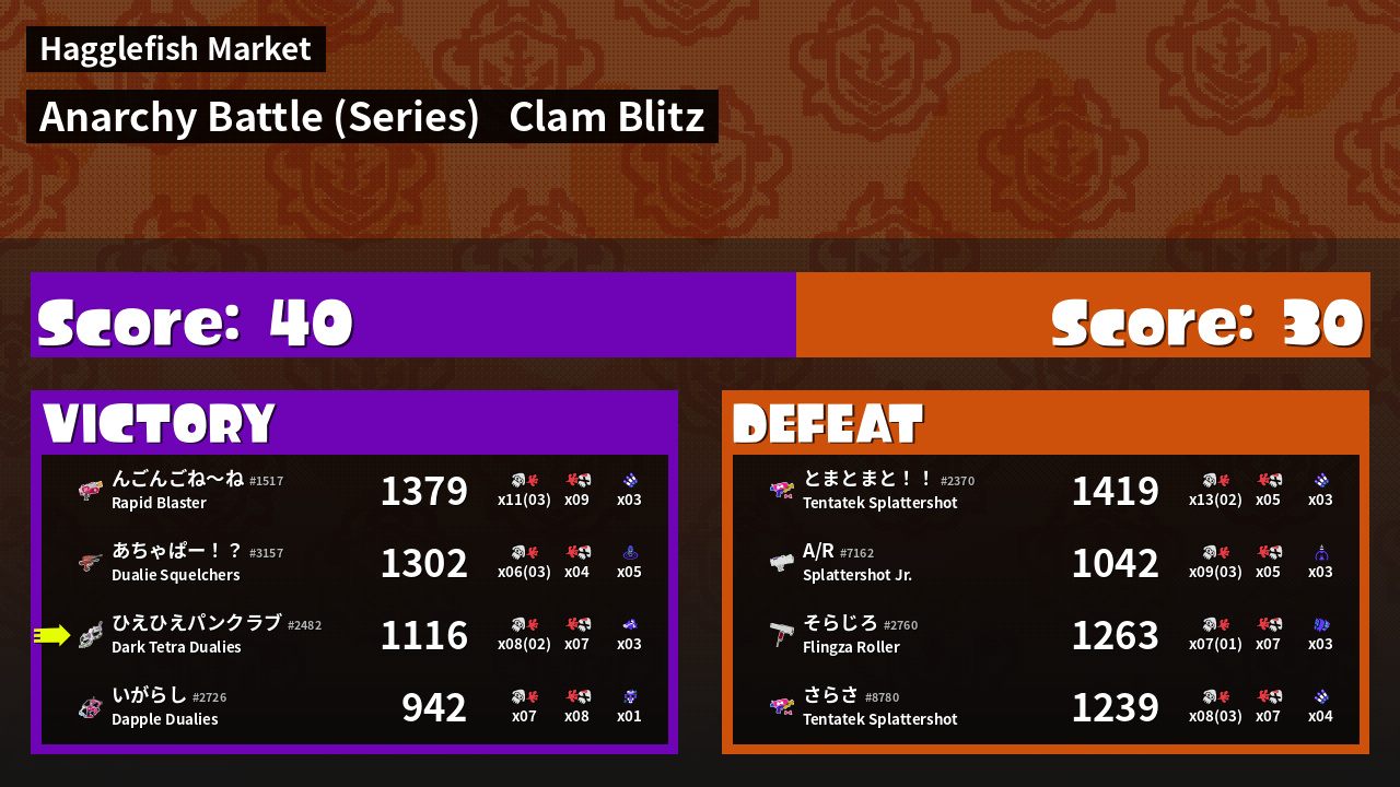 | Mode | Clam Blitz - Anarchy Battle (Series) | ||