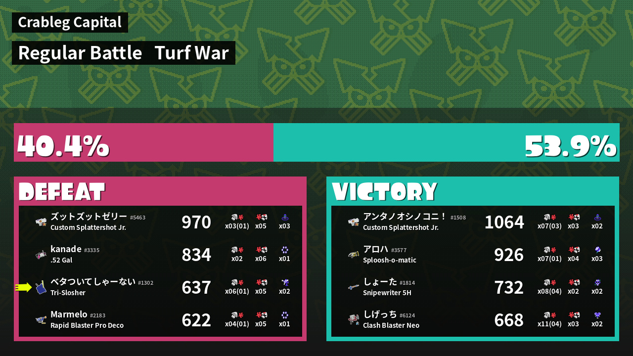 | Mode | Turf War - Regular Battle | ||
