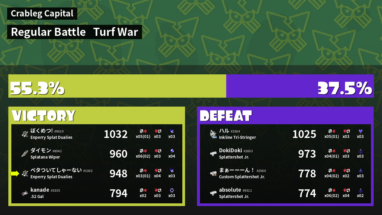 | Weapon | Enperry Splat Dualies ( Curling Bomb / Triple Splashdown) | ||