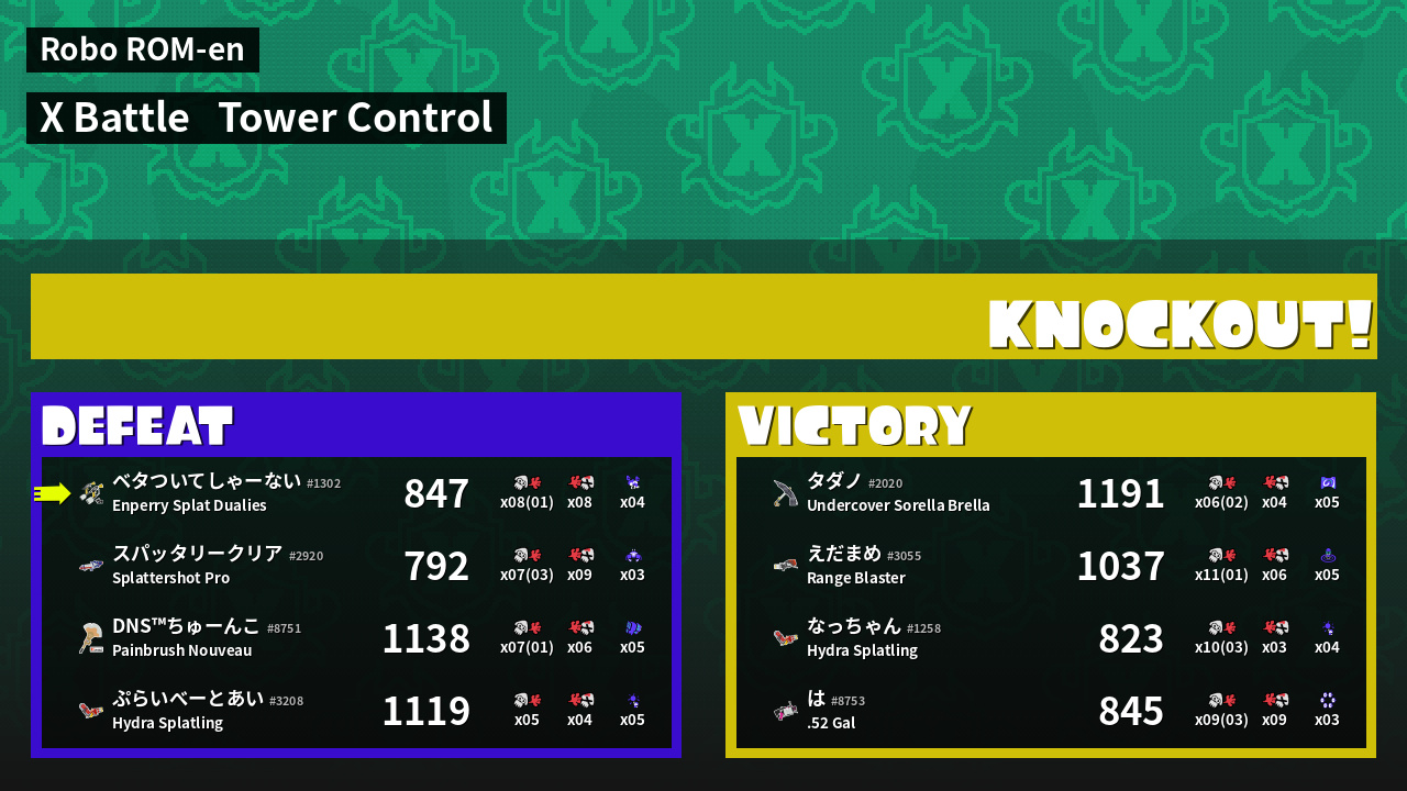 | Weapon | Enperry Splat Dualies ( Curling Bomb / Triple Splashdown) | ||