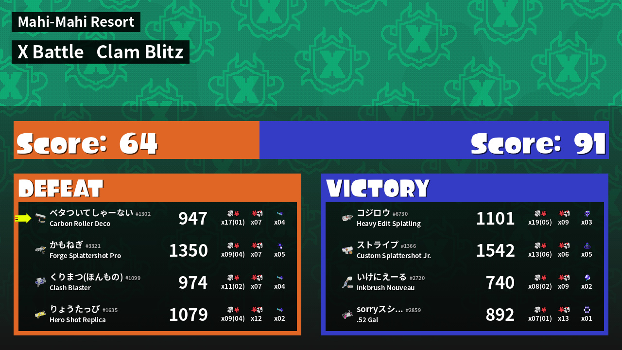 | Mode | Clam Blitz - X Battle | ||