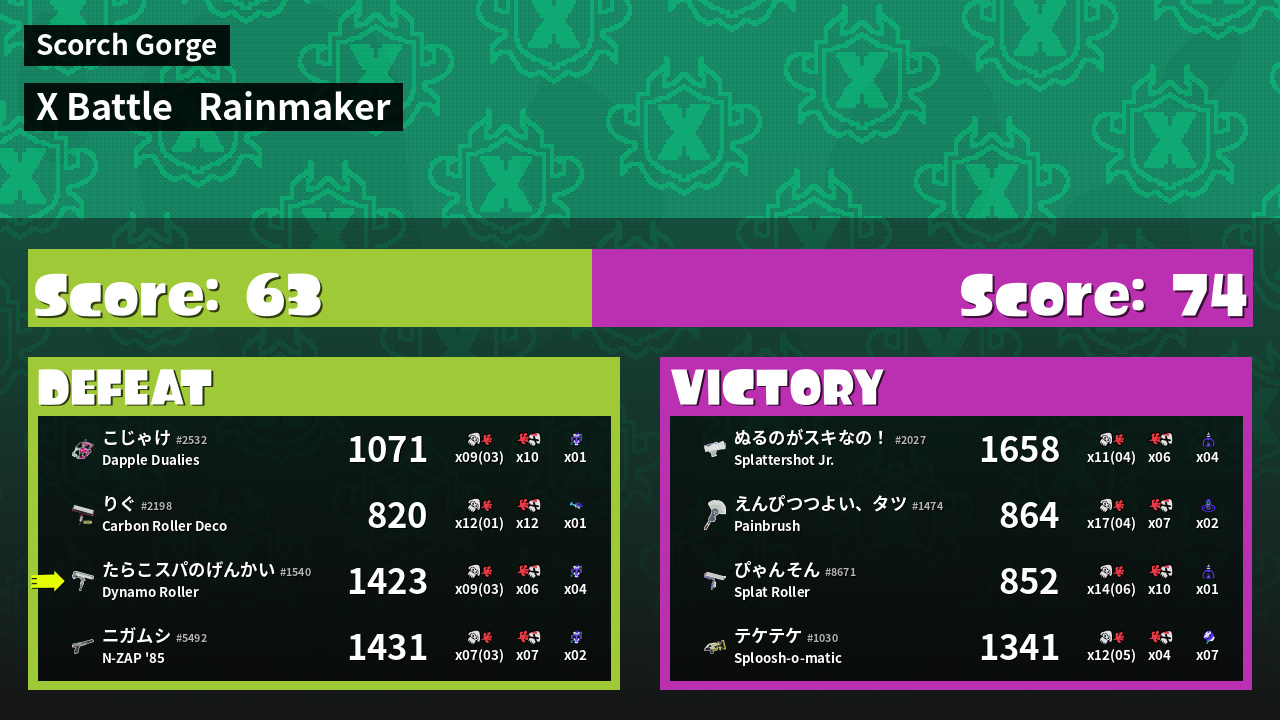 | Weapon | Dynamo Roller ( Sprinkler / Tacticooler) | ||