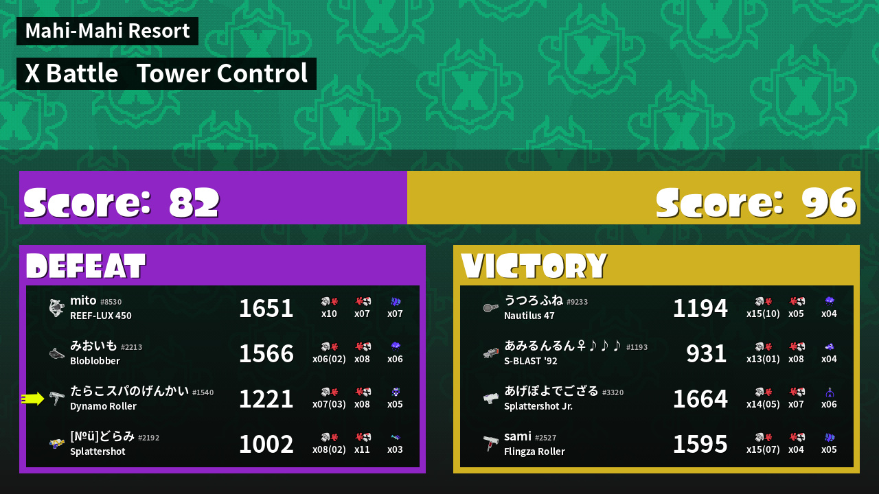 | Mode | Tower Control - X Battle | ||