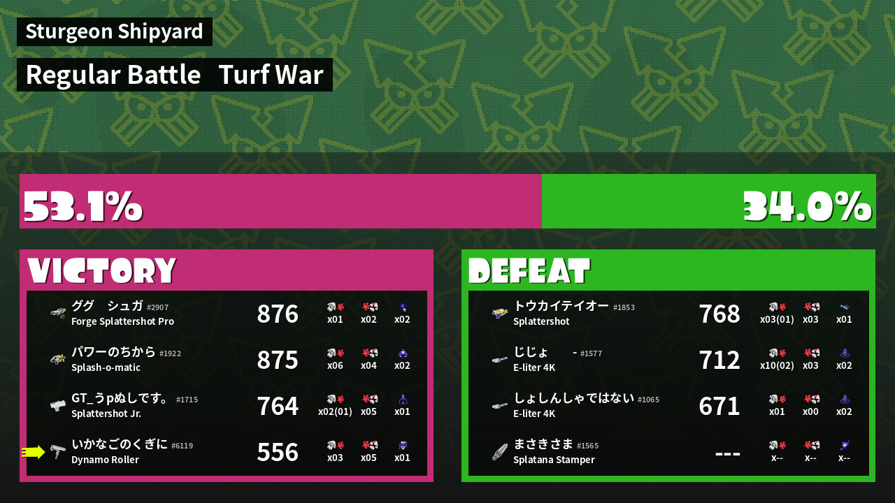 | Mode | Turf War - Regular Battle | ||