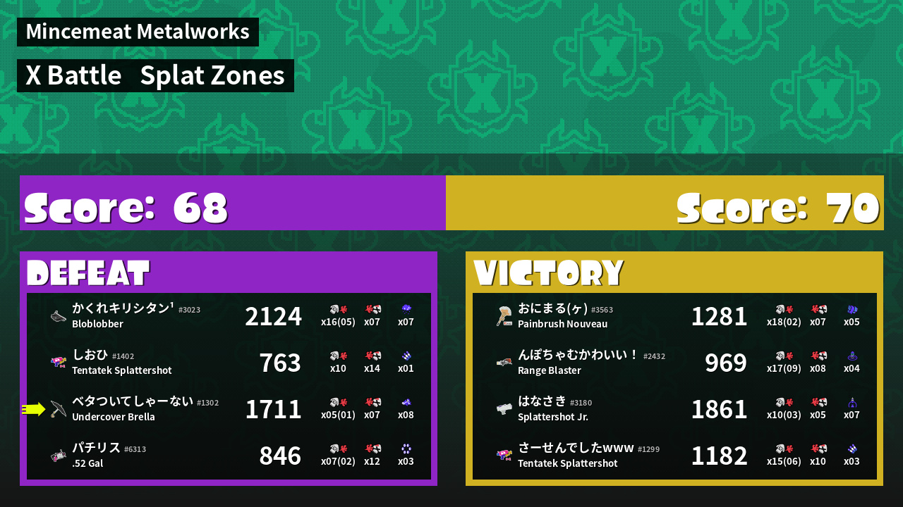 | Medals | #1 Super Jump Spot #1 Reefslider User #2 Splat Zone Inker | ||