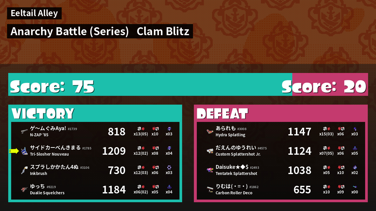 | Mode | Clam Blitz - Anarchy Battle (Series) | ||