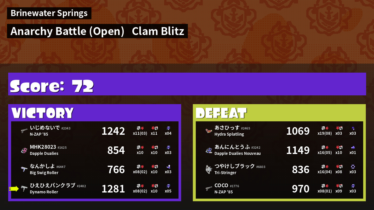 | Mode | Clam Blitz - Anarchy Battle (Open) | ||