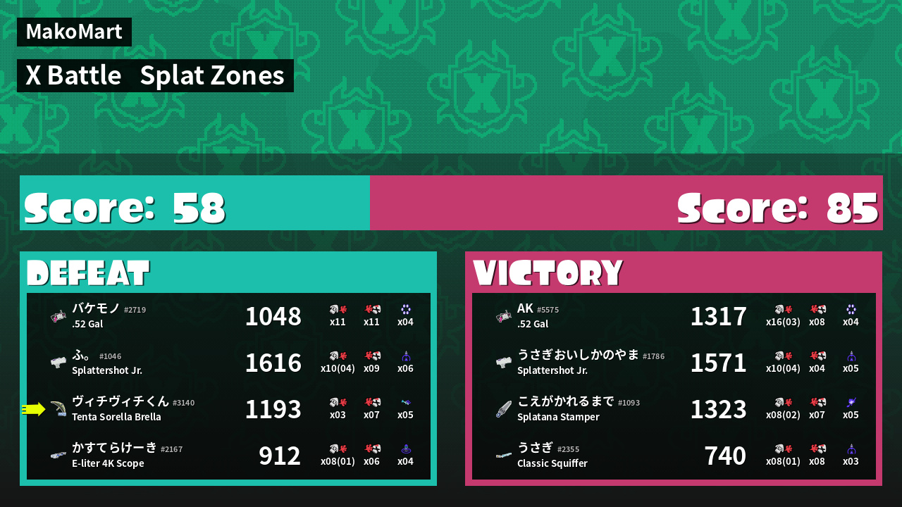 | Weapon | Tenta Sorella Brella ( Ink Mine / Trizooka) | ||