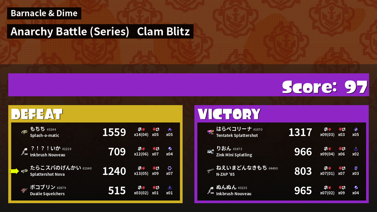 | Mode | Clam Blitz - Anarchy Battle (Series) | ||