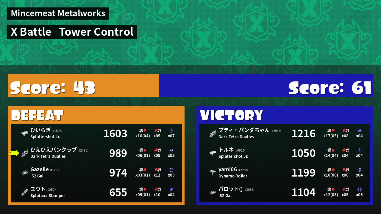 | Mode | Tower Control - X Battle | ||