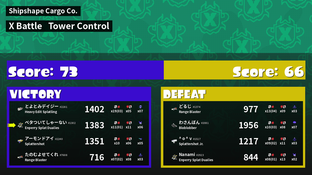 | Weapon | Enperry Splat Dualies ( Curling Bomb / Triple Splashdown) | ||