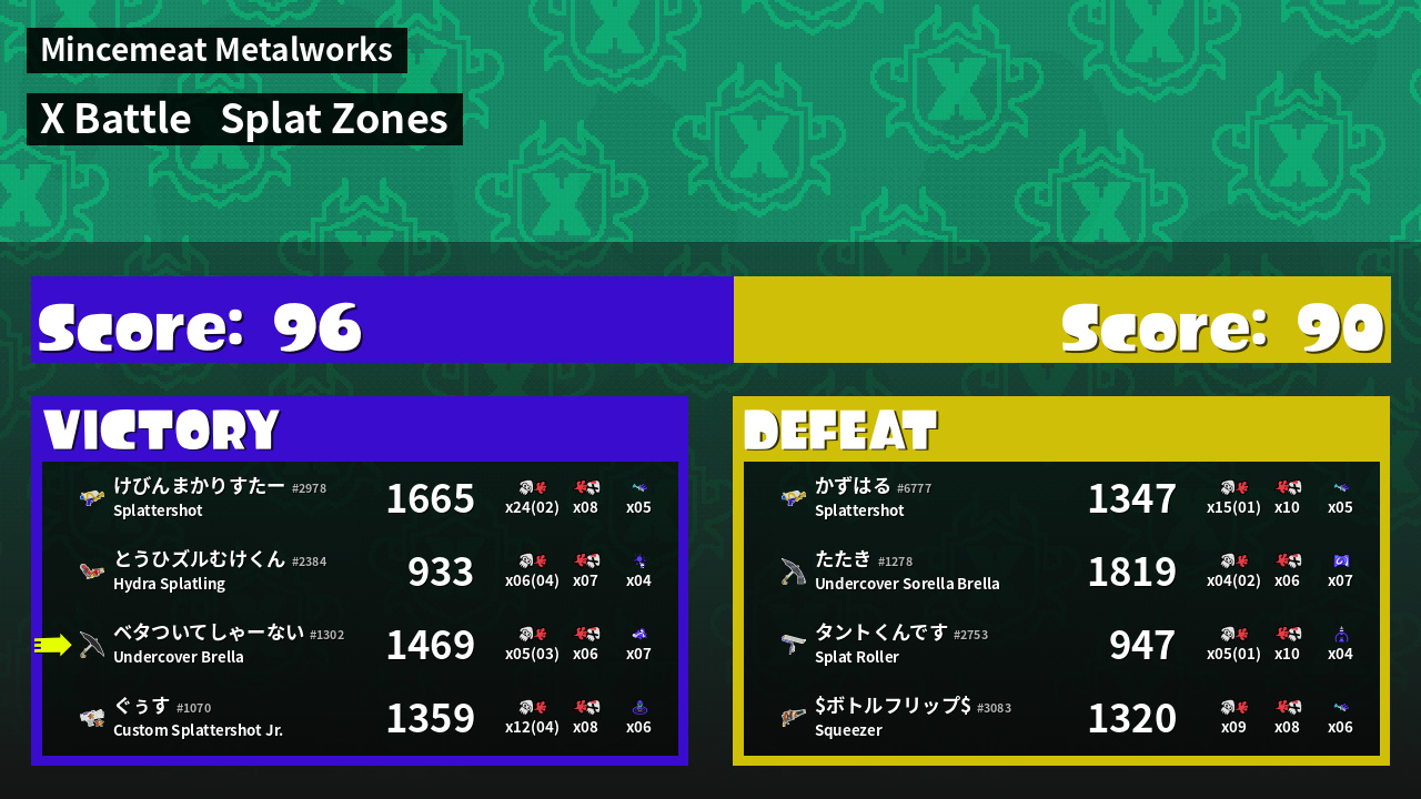 | Medals | #1 Splat Zone Inker #1 Popular Target #1 Reefslider User | ||
