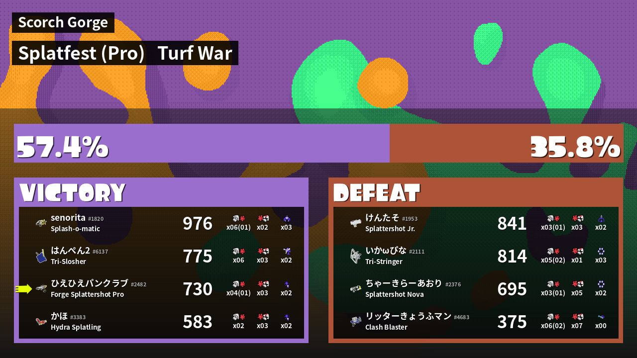 | Mode | Turf War - Splatfest (Pro) | ||