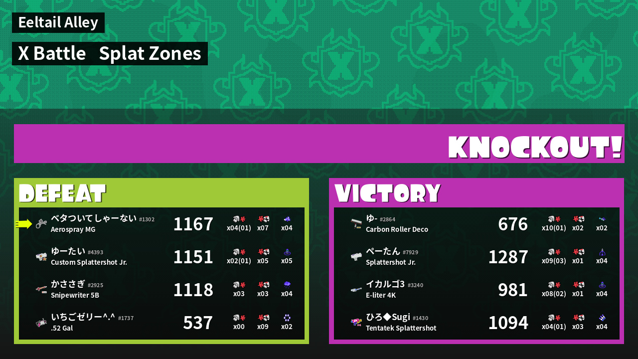 | Mode | Splat Zones - X Battle | ||
