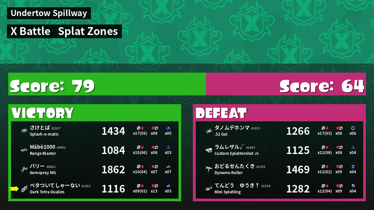 | Mode | Splat Zones - X Battle | ||