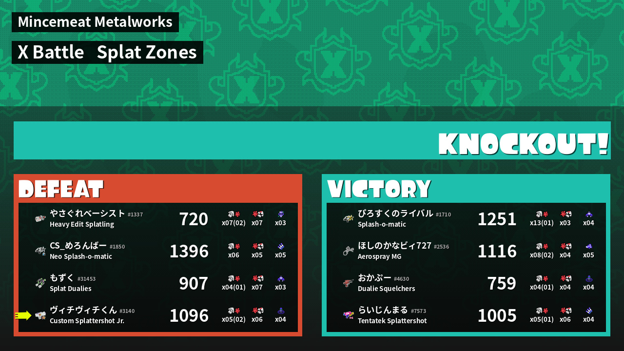 | Medals | #1 Splat Assister #1 Splat Zone Hero #1 Ink Consumer | ||