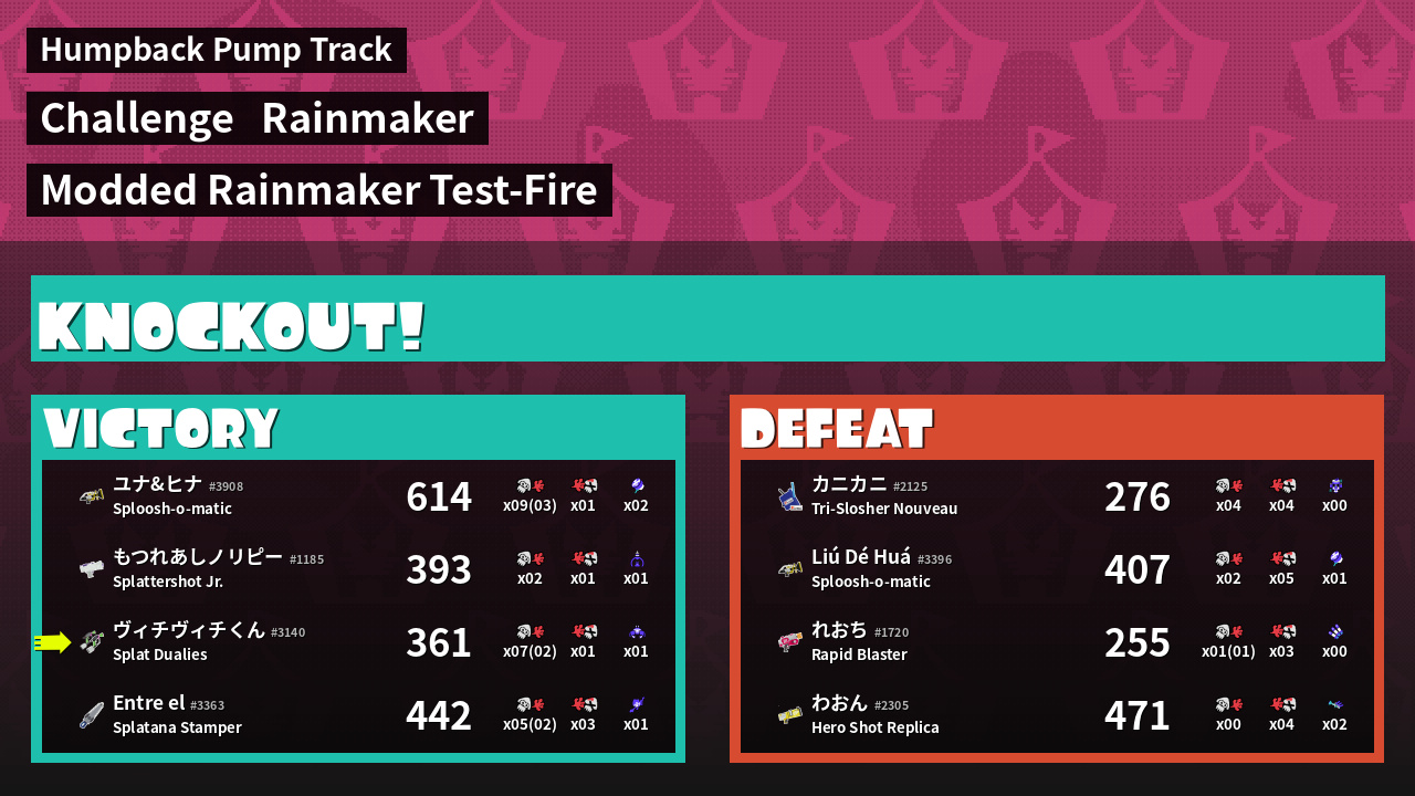 | Name | Weapon | Inked | k |