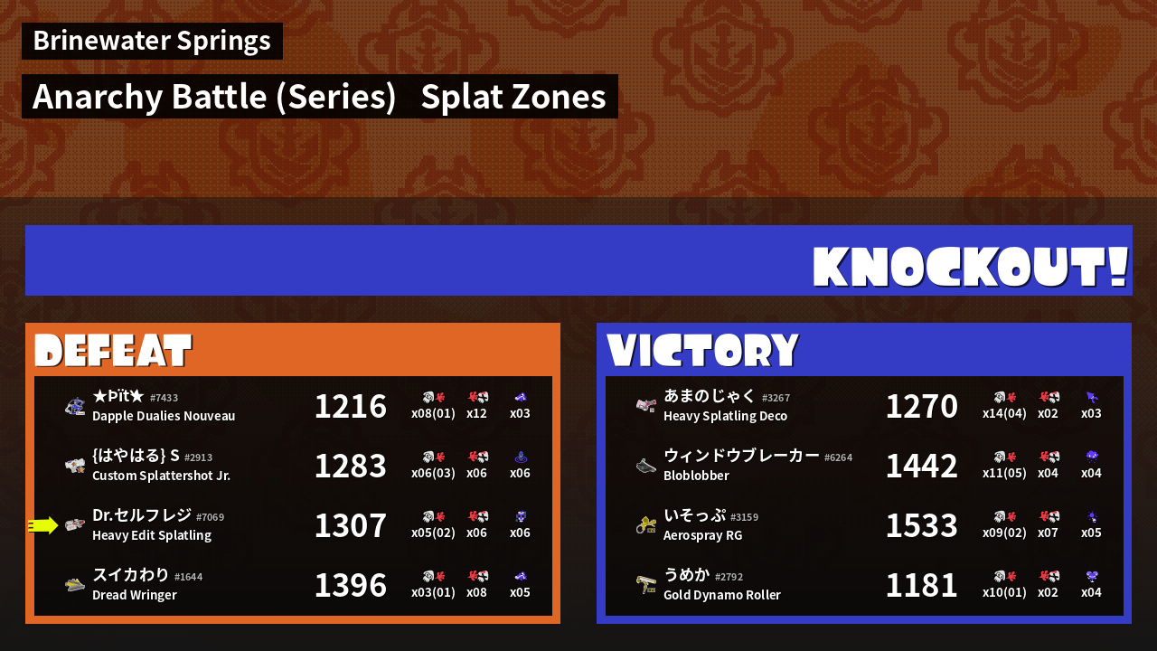 | Mode | Splat Zones - Anarchy Battle (Series) | ||