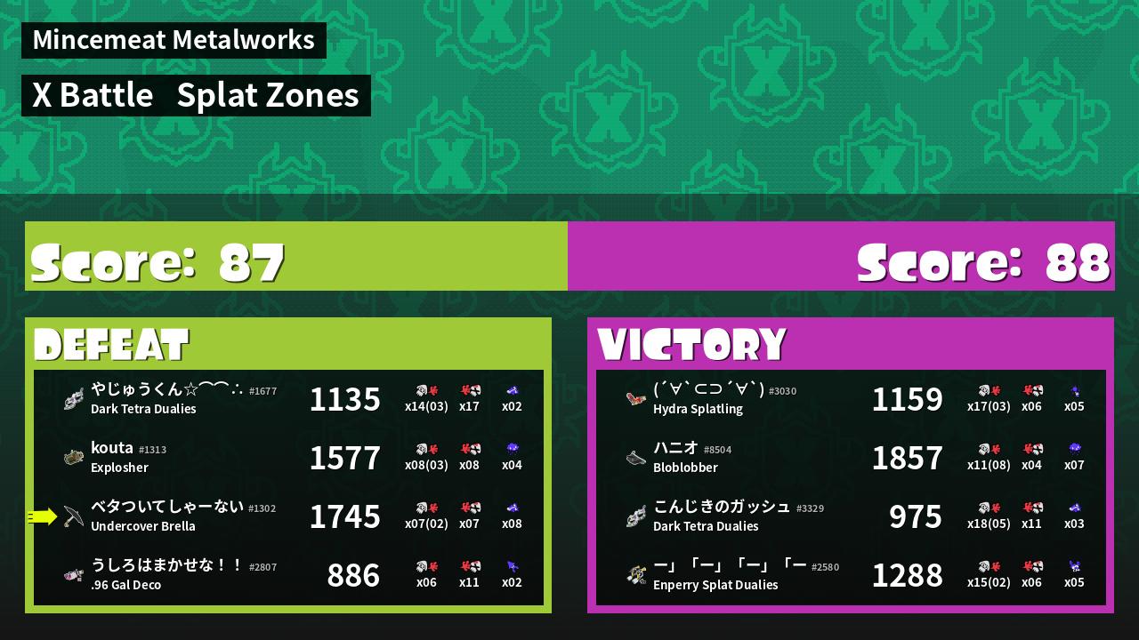 | Mode | Splat Zones - X Battle | ||