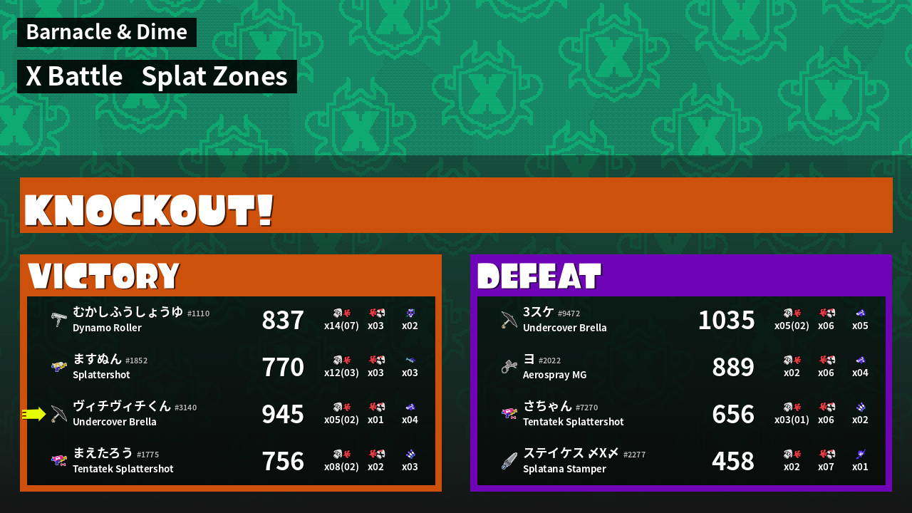 | Mode | Splat Zones - X Battle | ||