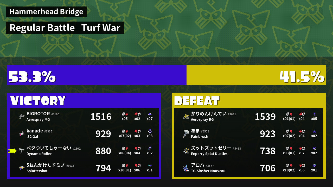 | Medals | #1 Splat Assister #1 Base Defender #1 Ink Consumer | ||