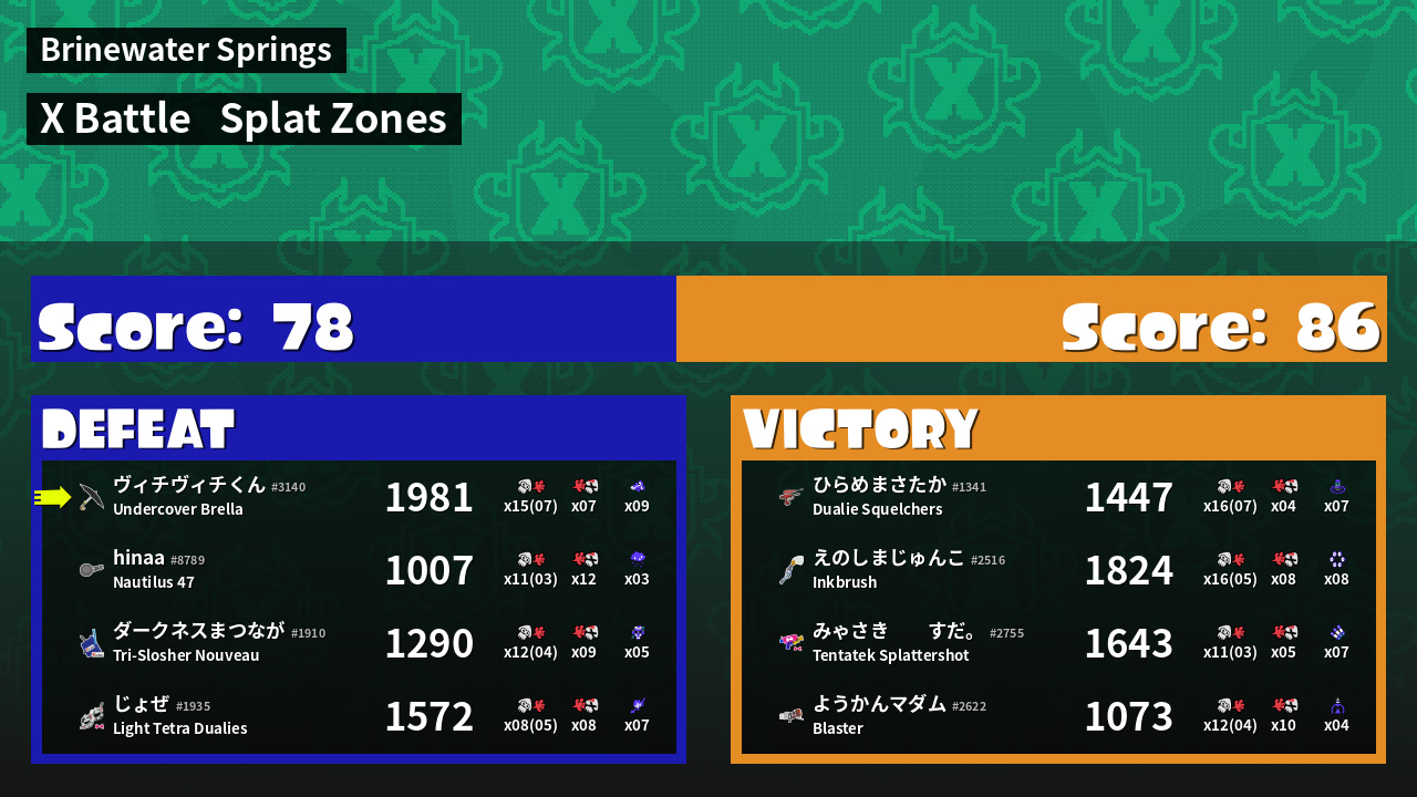 | Mode | Splat Zones - X Battle | ||
