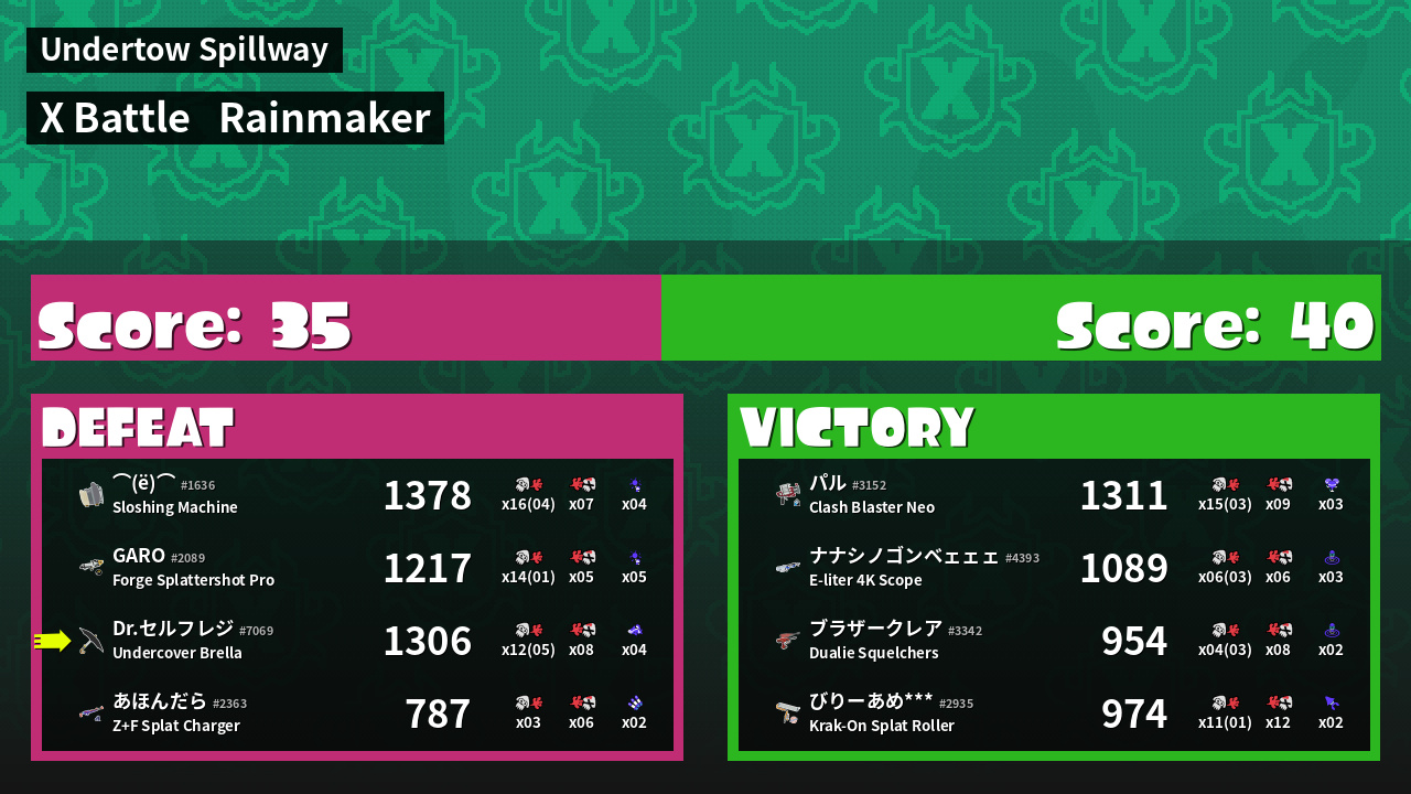 | Weapon | Undercover Brella ( Ink Mine / Reefslider) | ||