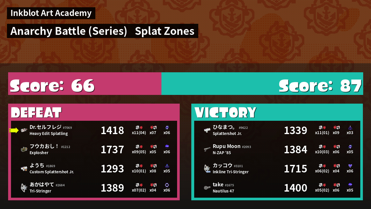 | Mode | Splat Zones - Anarchy Battle (Series) | ||