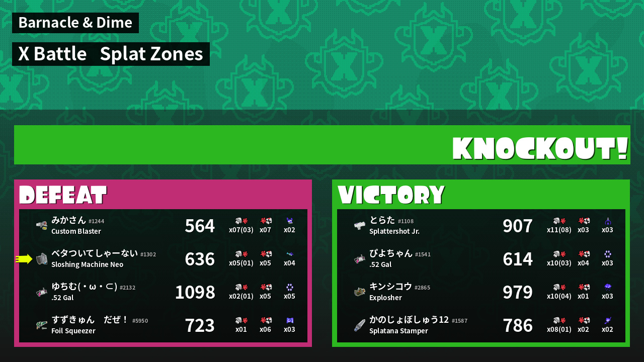 | Mode | Splat Zones - X Battle | ||