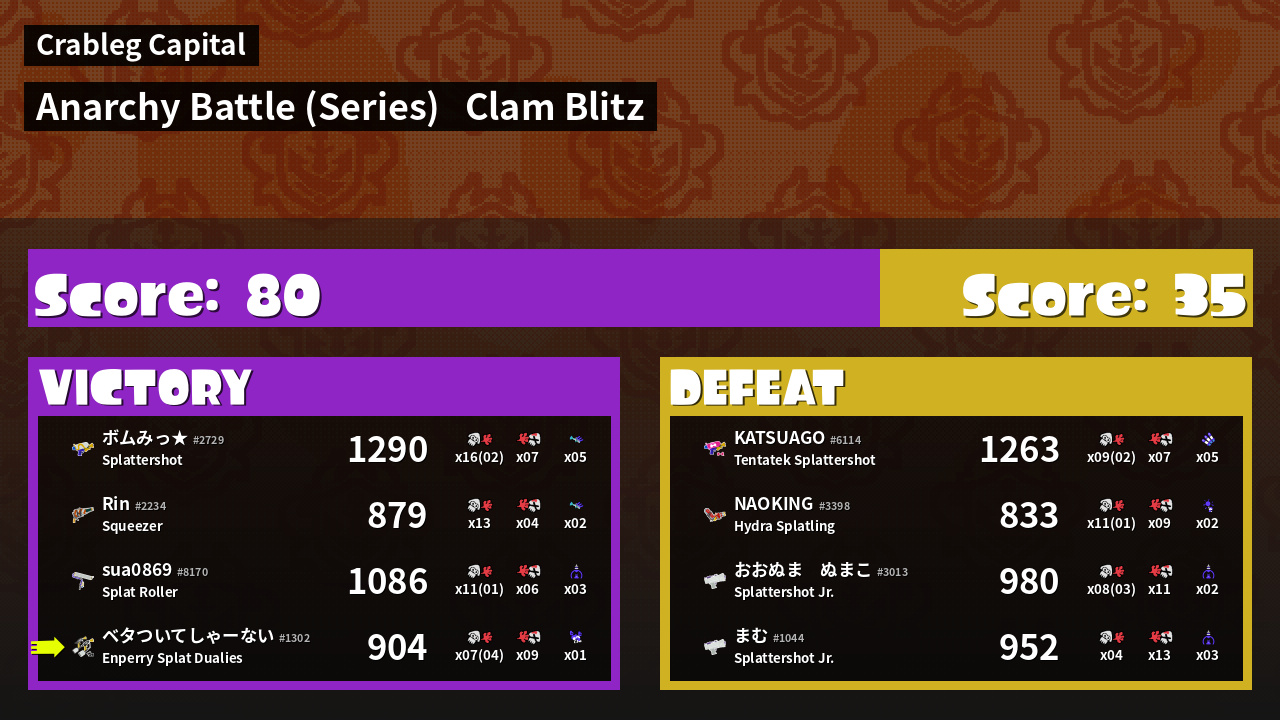 | Mode | Clam Blitz - Anarchy Battle (Series) | ||