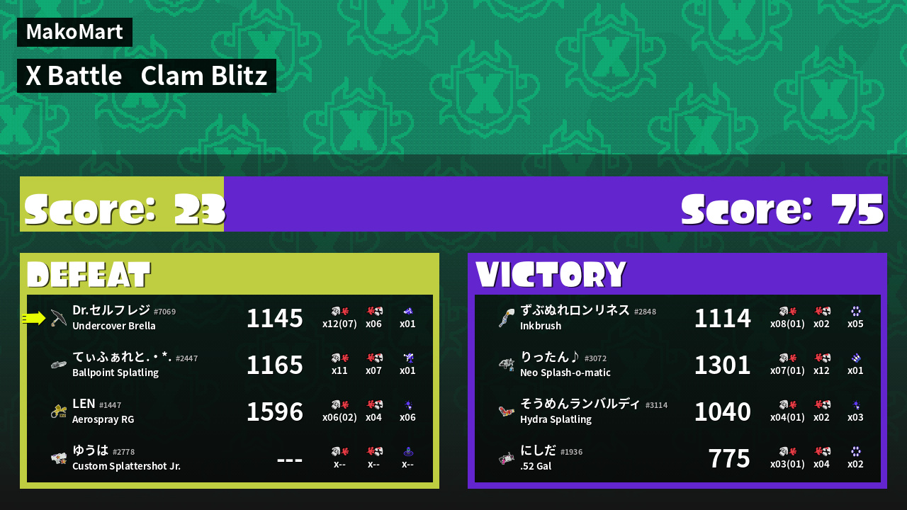 | Mode | Clam Blitz - X Battle | ||
