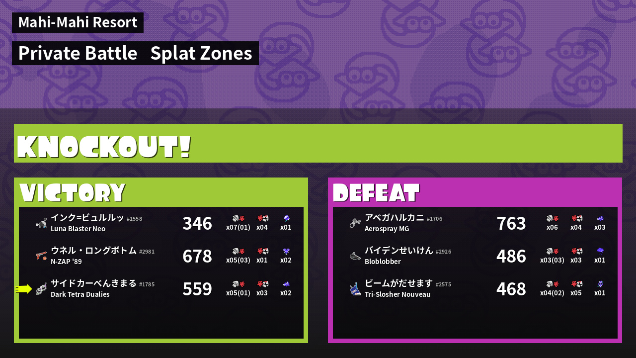 | Mode | Splat Zones - Private Battle | ||