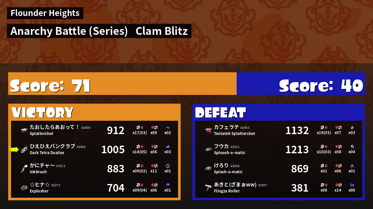 | Mode | Clam Blitz - Anarchy Battle (Series) | ||