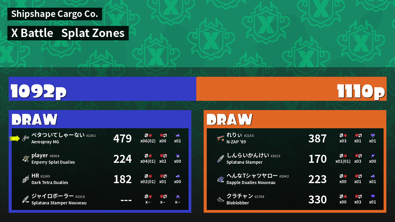 | Mode | Splat Zones - X Battle | ||