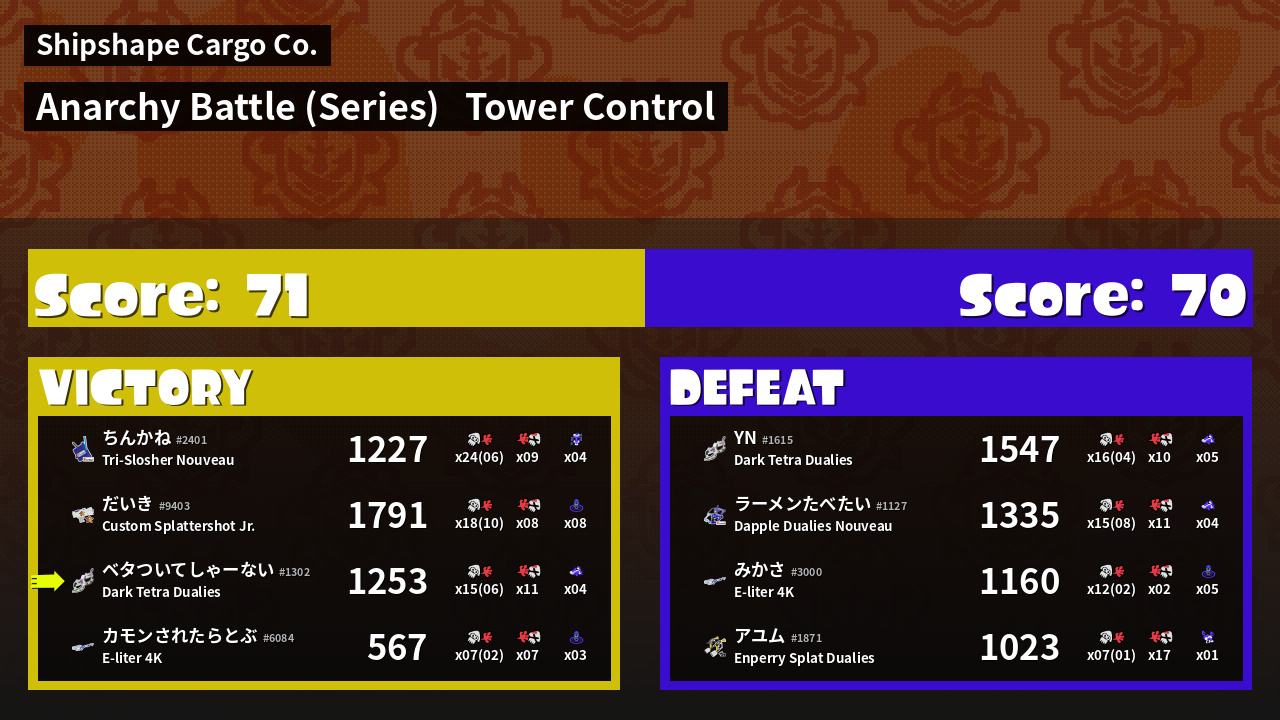| Mode | Tower Control - Anarchy Battle (Series) | ||