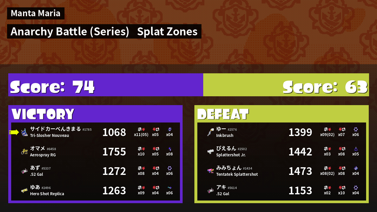 | Mode | Splat Zones - Anarchy Battle (Series) | ||