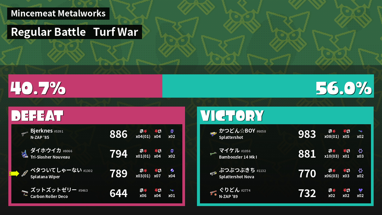| Medals | #1 Splat Assister First Splat! #1 Ultra Stamp User | ||