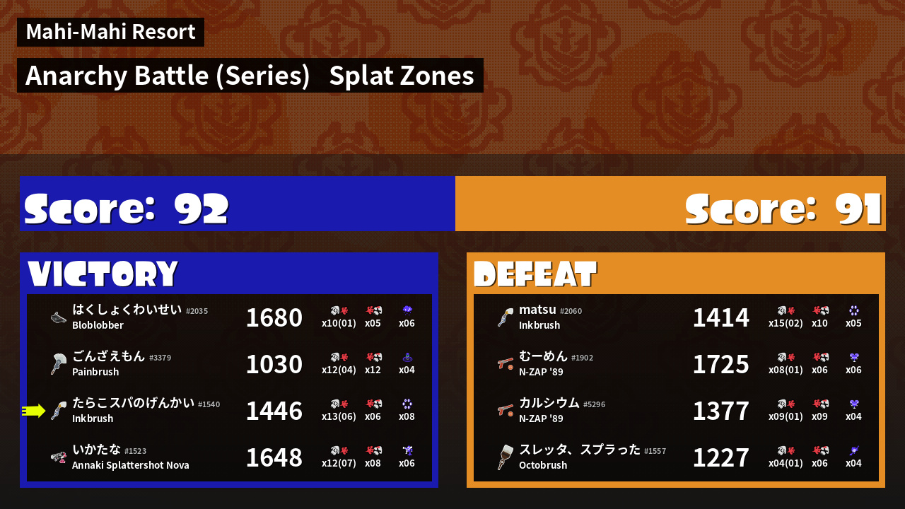 | Mode | Splat Zones - Anarchy Battle (Series) | ||