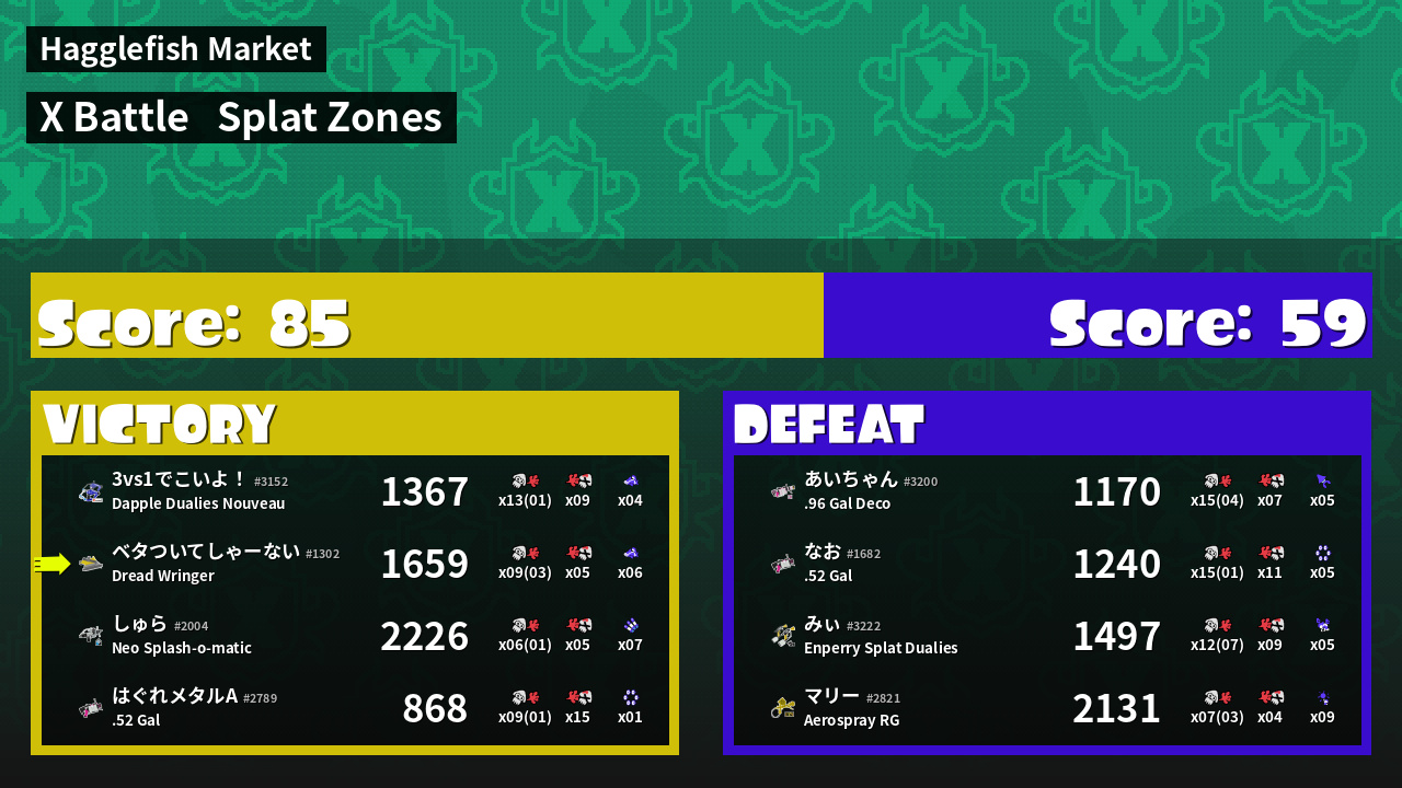 | Mode | Splat Zones - X Battle | ||