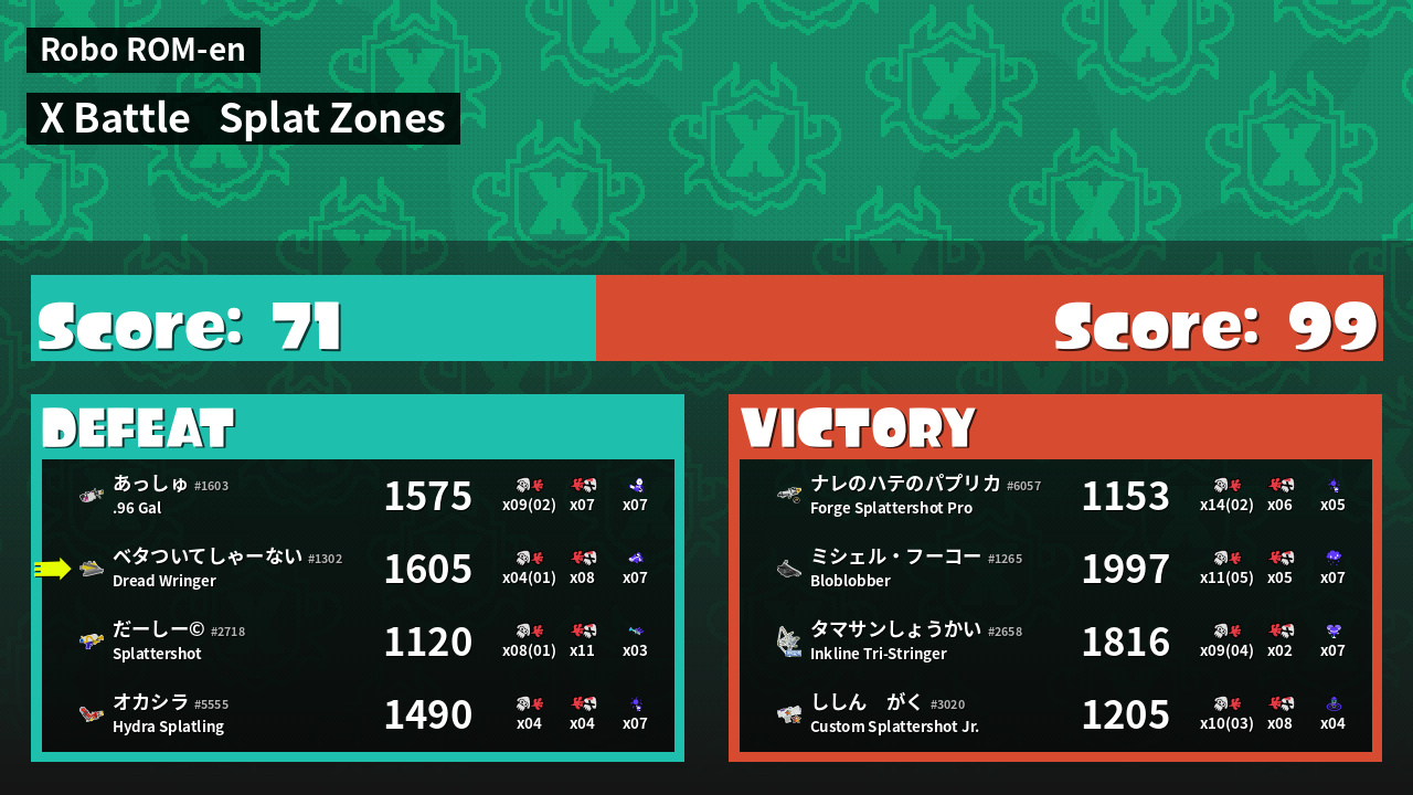 | Mode | Splat Zones - X Battle | ||