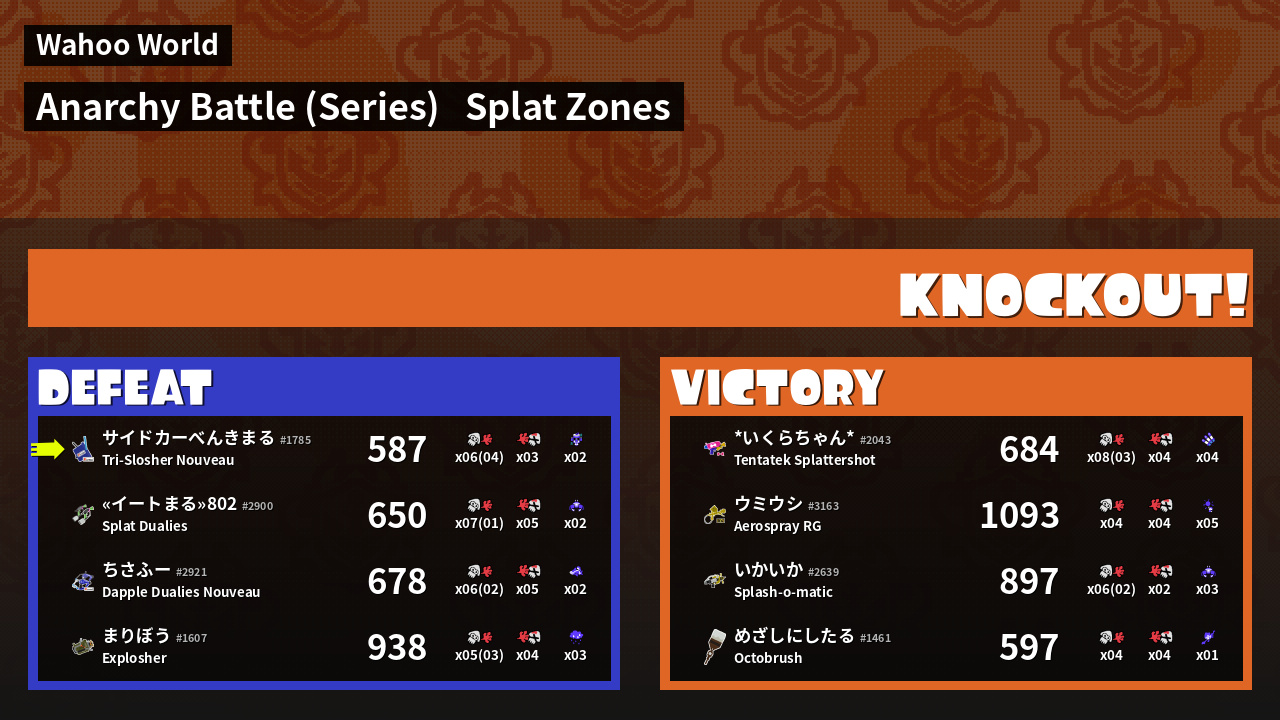 | Medals | #1 Splat Zone Guard #1 Super Jump Spot #1 Splat Assister | ||
