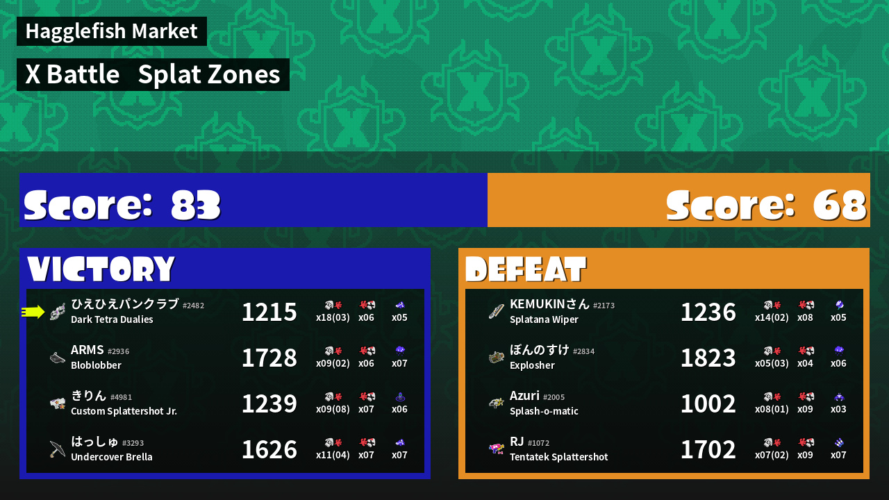 | Medals | #1 Overall Splatter #1 Splat Zone Guard #1 Popular Target | ||