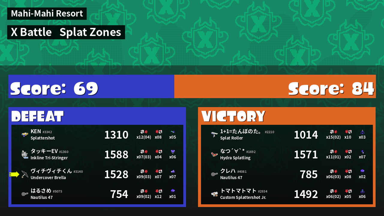 | Medals | #1 Splat Zone Hero #1 Ground Traveler #1 Damage Taker | ||