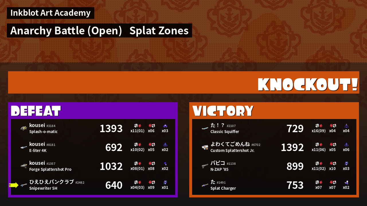| Mode | Splat Zones - Anarchy Battle (Open) | ||